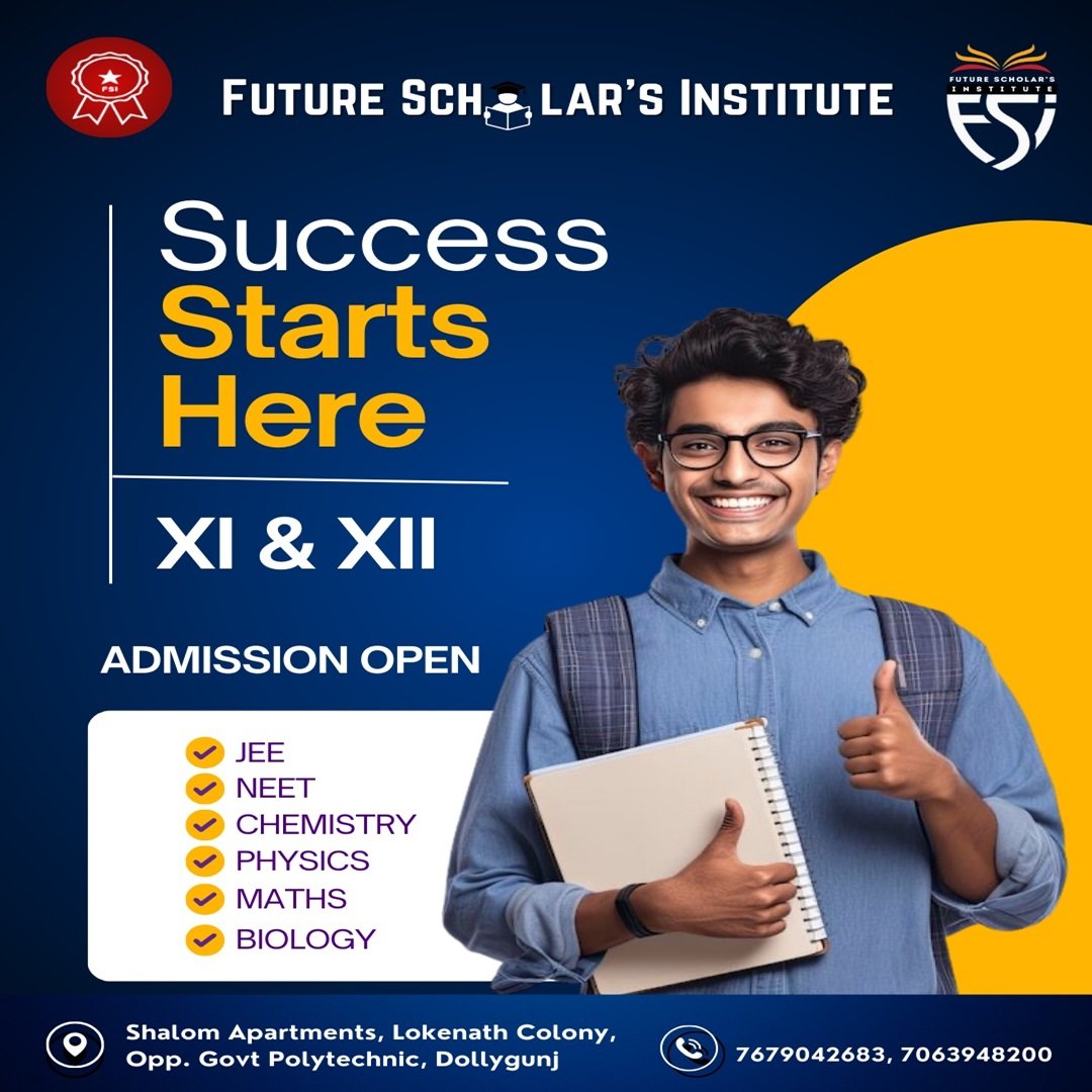 Future Scholars Institute in Sri Vijaya Puram provides specialized coaching for classes XI, XII, and competitive exams like JEE and NEET. Our expert faculty delivers comprehensive instruction in Physics, Chemistry, Mathematics, and Biology, fostering academic excellence through structured learning and individual attention